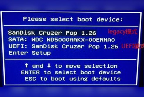9查询该电脑机型的U盘启动快捷键,重启出现开机画面后按下此键,进入优先启动项设置界面,通过“↑↓”键选择U盘选项后回车进入大白菜winpe界面,如下图所示,选择带有USB字样的或者选择自己的U盘名称标识(这里我u盘名称就是Sandisk Cruzer pcp1.26)